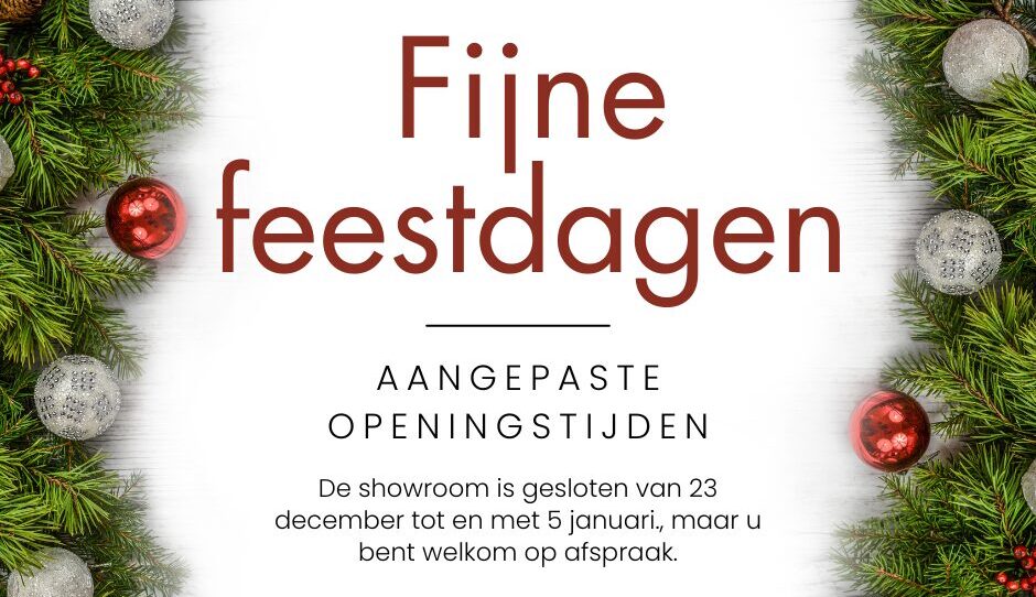 Tijdens de feestdagen is de showroom enkel op afspraak geopend. Reserveer de laatste plekken via onderstaande link.